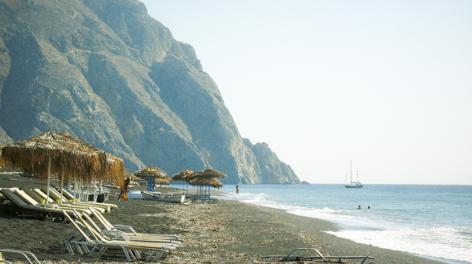 To begin with, Santorini is not Hawaii or Florida – you won’t find the typical long white sandy beaches here. Instead what you’ll find dark sand washed with deep blue waters some of them are surrounded by vertical cliffs and rock formations. While other beaches don’t have sand but have volcanic pebbles instead. OK, it does not really sound like your dream vacation beach, but you must give them a chance to understand that these beaches are some of the most unique in the world!