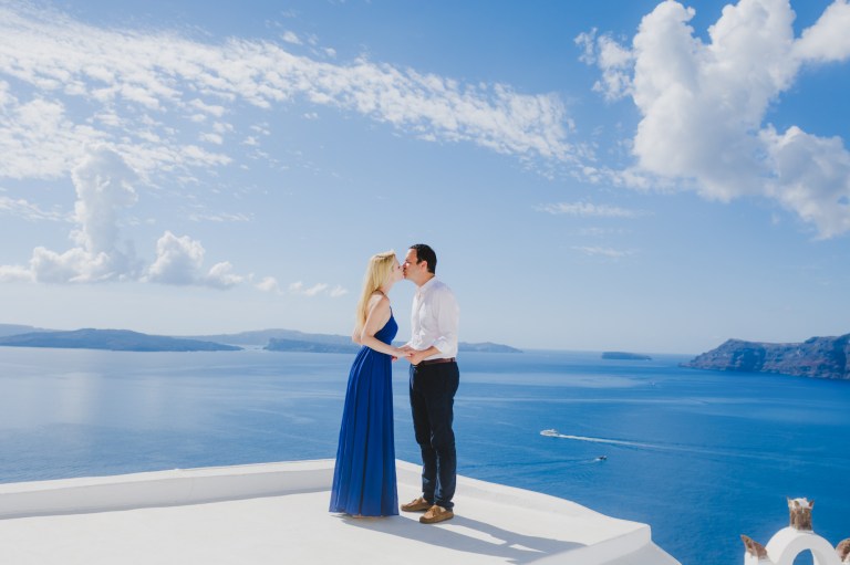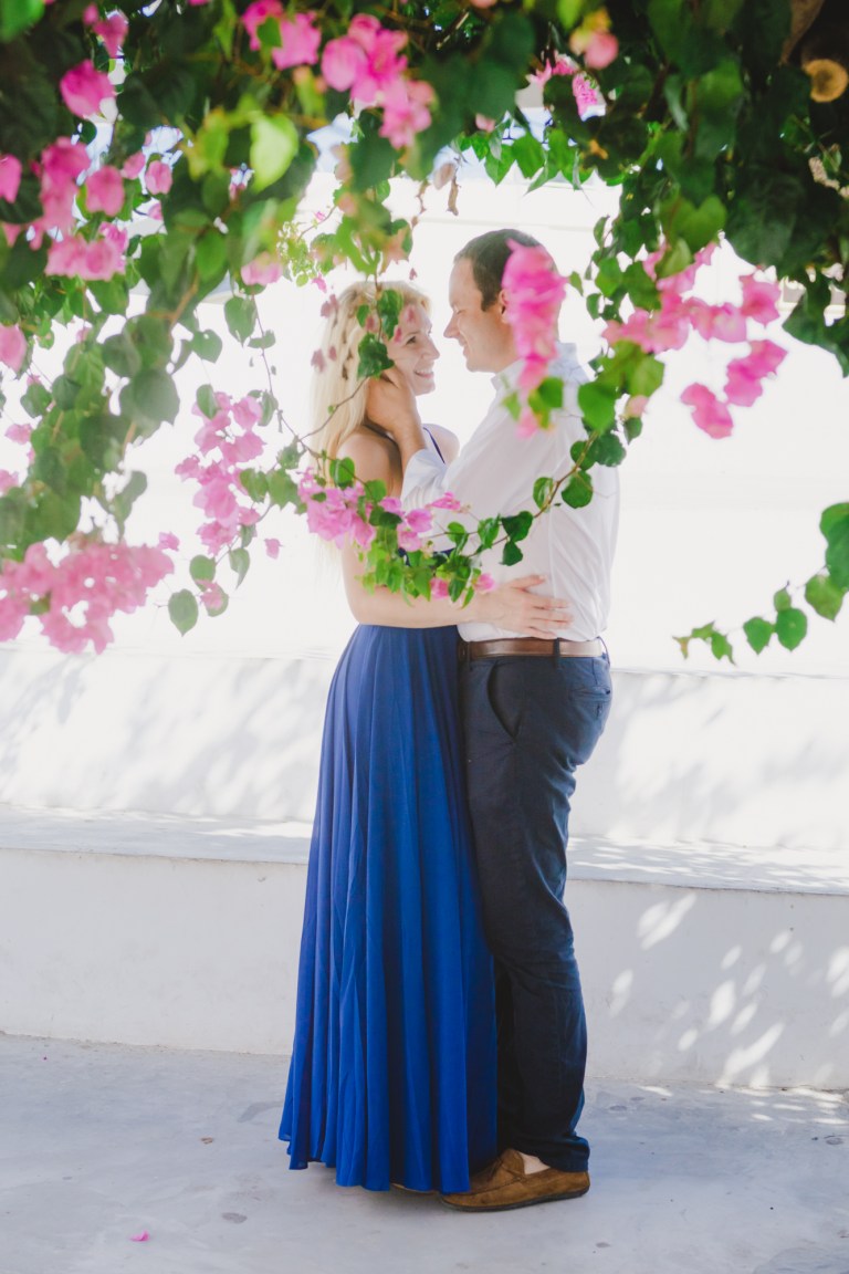 So we set a date, they arrived to the Ikies Traditional Houses in Oia to enjoy the island and yet there was a plot twist…the local ferry operators decided to go on strike. What difference does it make? If they wanted to get off the island, we had to change plans and operate on a tight schedule – Sara called me and we came up with a plan, we had to act fast and meet in the morning of the planned date, do the photo shoot and send them off packing before the ship leaves.