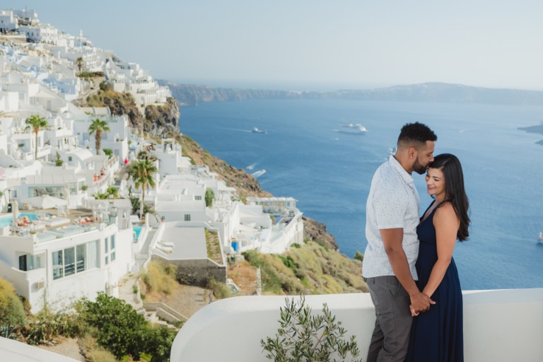 This couple wanted something special for their one year anniversary, and let me tell you – a trip to Santorini is probably one of the best choices for this. We were looking for some of the places that would help capture their tender love and eventually we ended up in the logical destination of Firostefani.