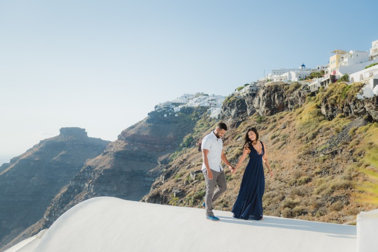 This couple wanted something special for their one year anniversary, and let me tell you – a trip to Santorini is probably one of the best choices for this. We were looking for some of the places that would help capture their tender love and eventually we ended up in the logical destination of Firostefani.