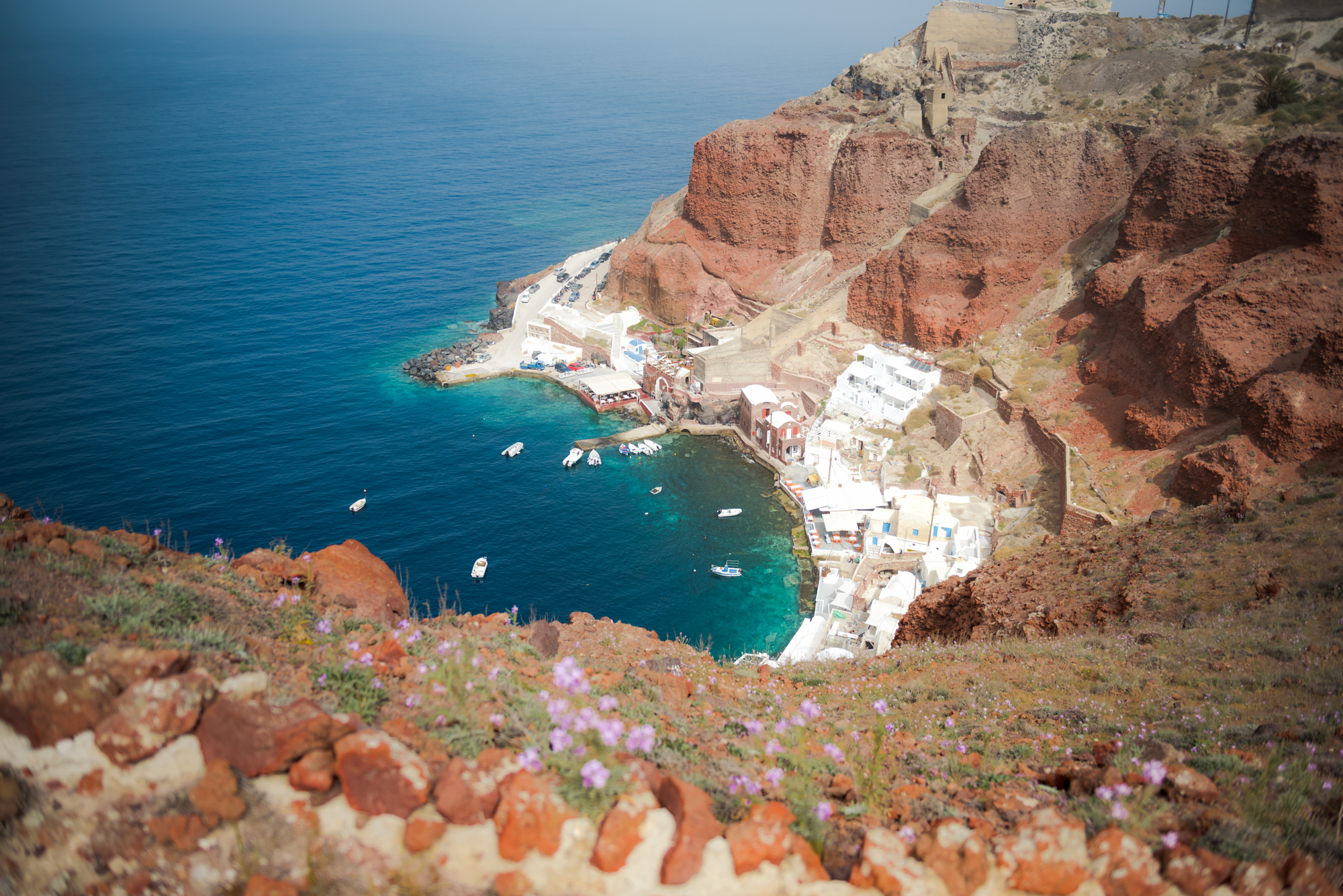 Fira port with it’s colorful buildings perched on the Caldera cliffside has the look you cannot mistake for any other place. A Santorini classic for sure, it gathers brave people willing to walk the 586 steps up and down just to be a part of its special vibe. If you’re not feeling like a total body workout and walking the 1172 steps both ways seems like a bit much, you can cheat a bit and get the scenic cable car ride one direction or both. ;)