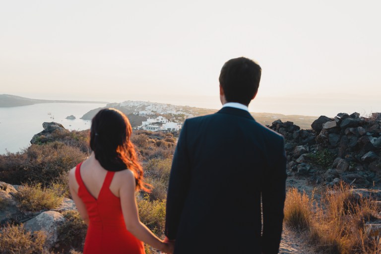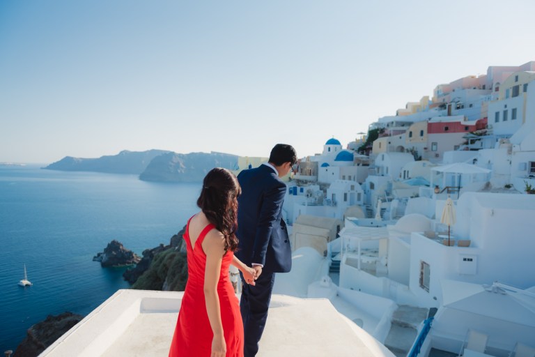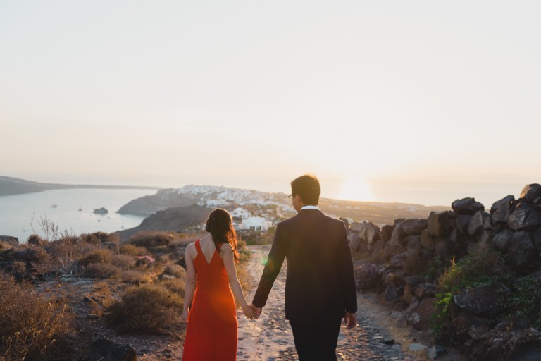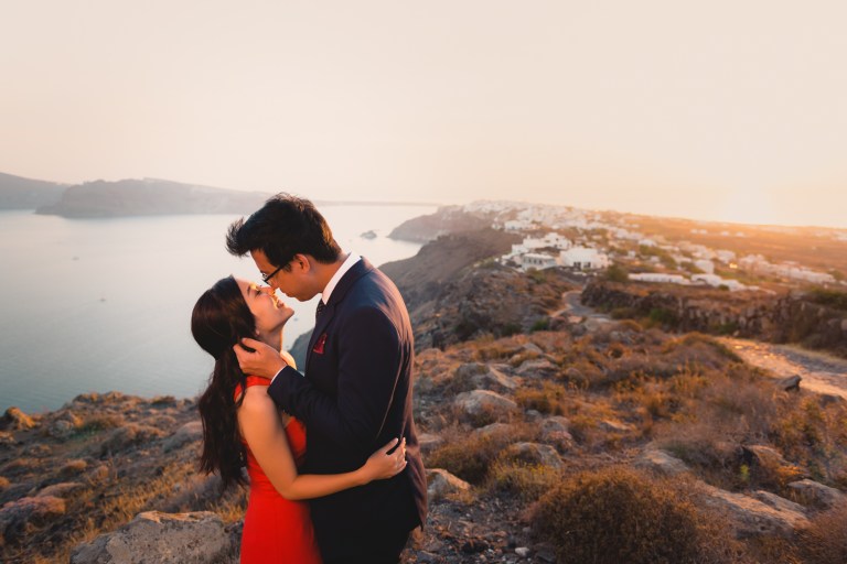 Sunset Santorini photoshoot with the most lovely couple from Singapore