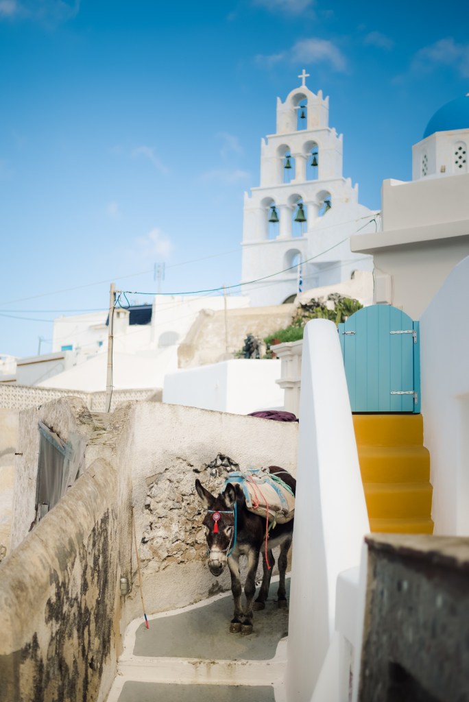 A photo of a donkey in the Pyrgos village by Anna Sulte, photographer on the island of Santorini.