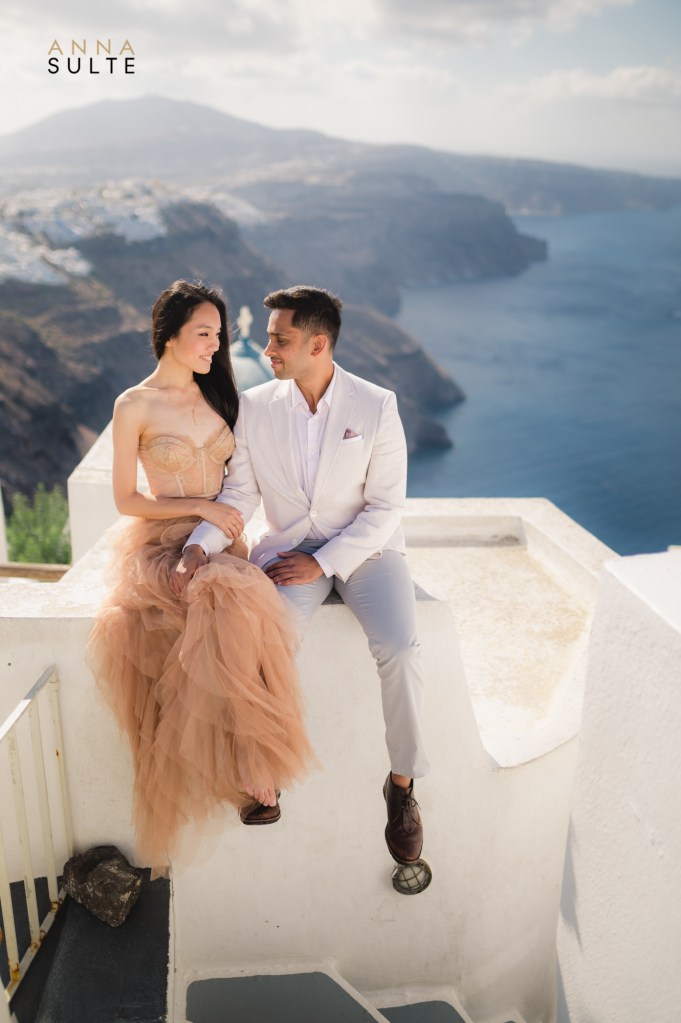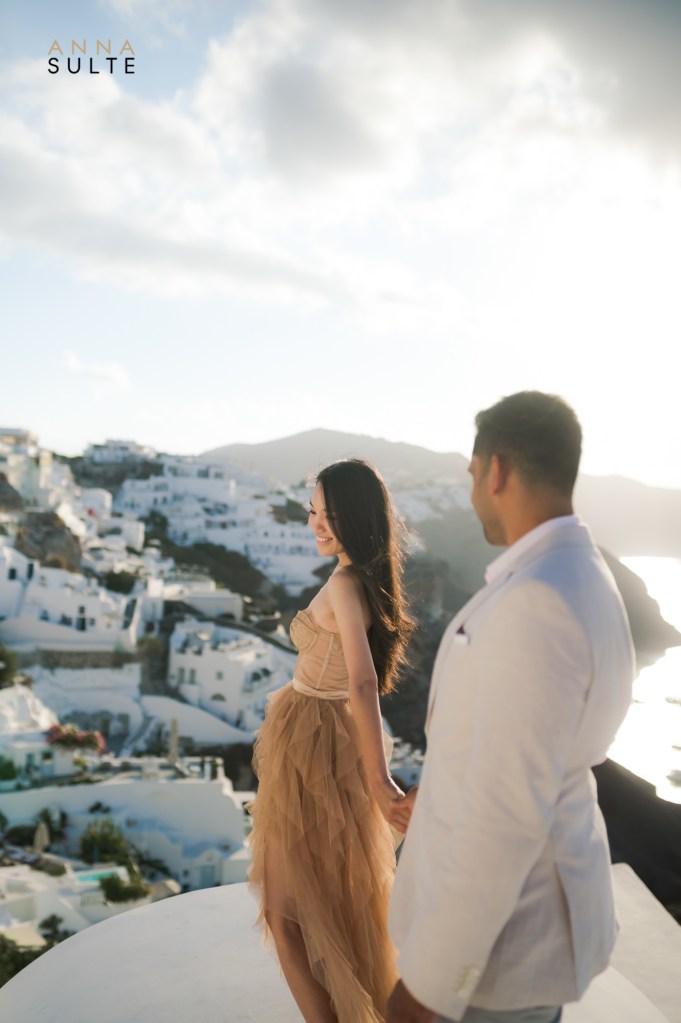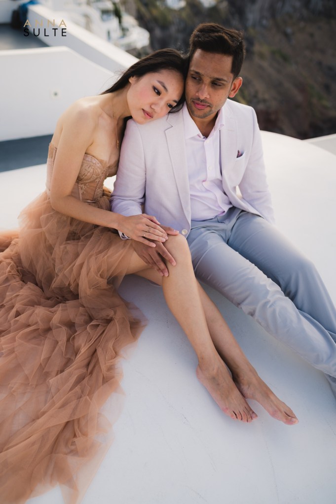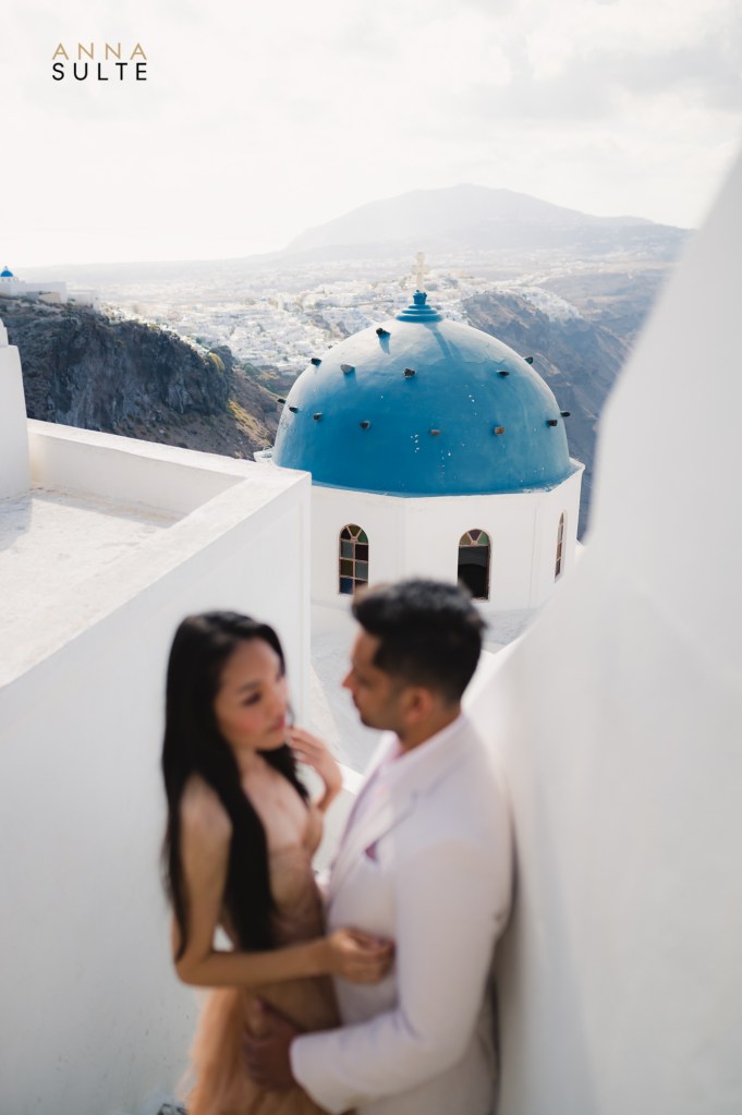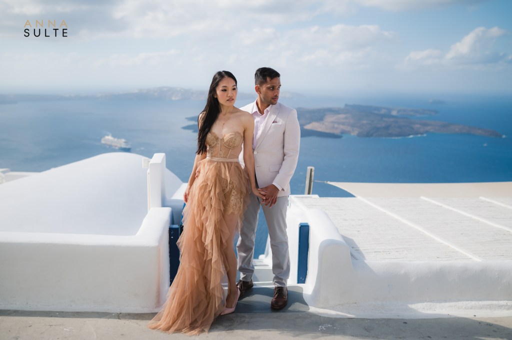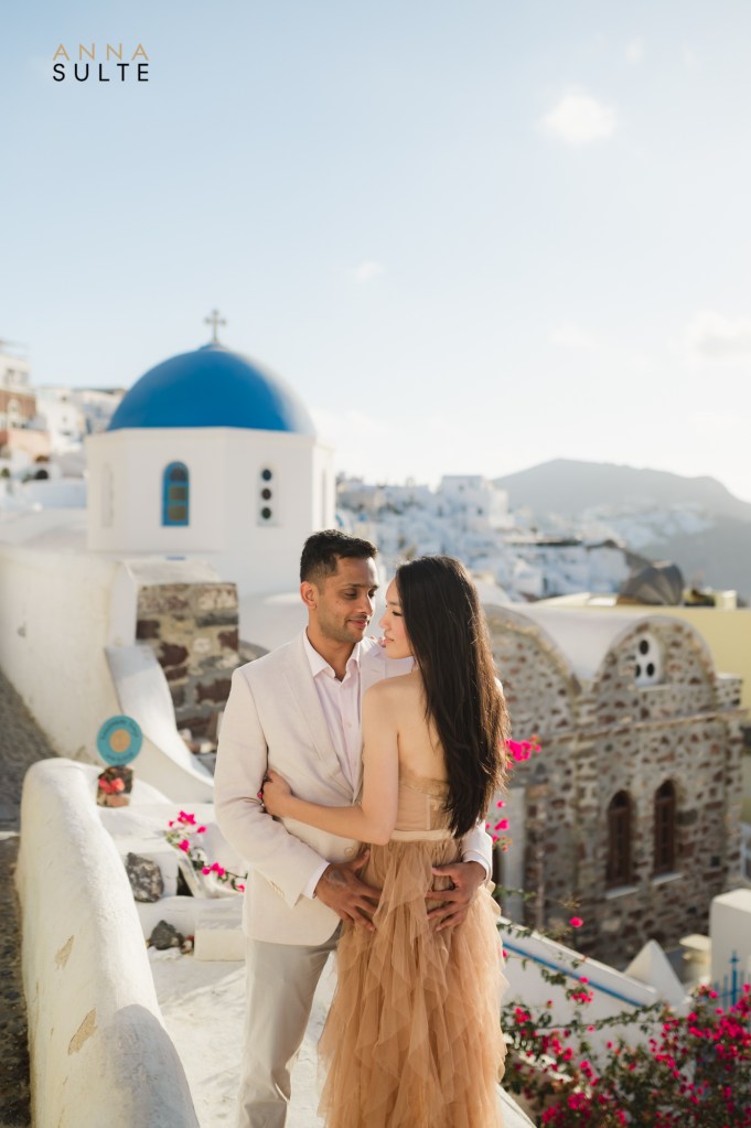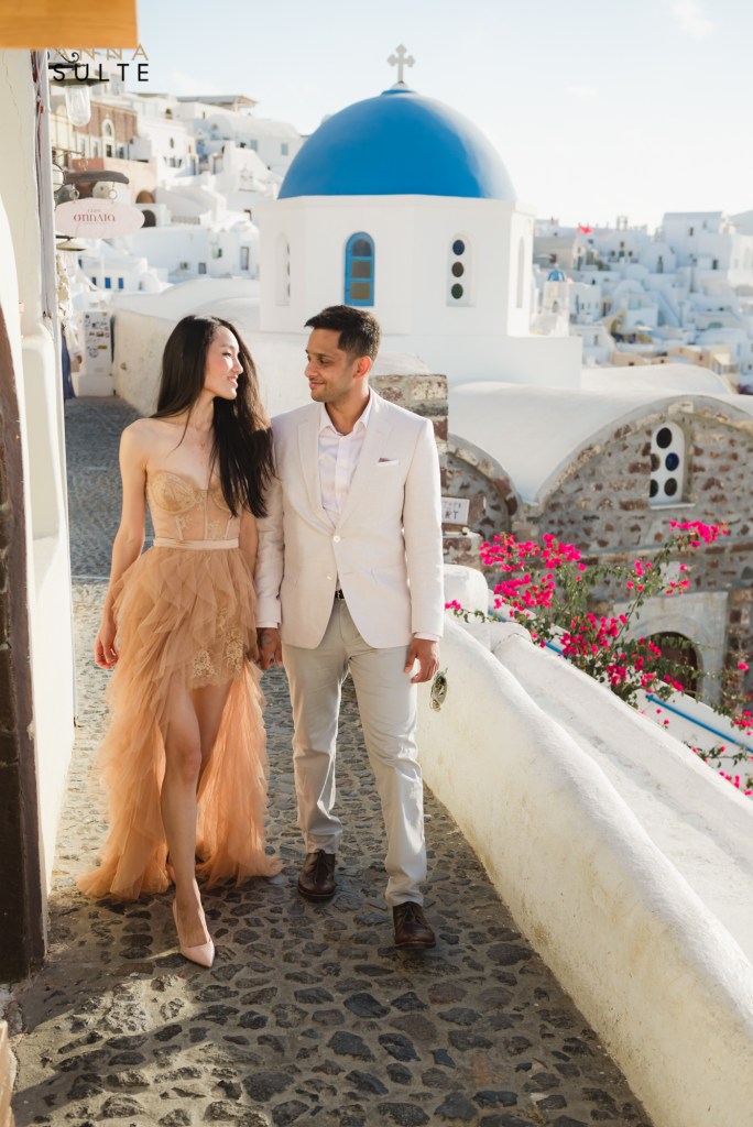 Tiffany and Udai. They looked at each other, and they smiled – effortless being together. Spending a morning with them starting in Oia city, then going to Imerovigli was a breeze, and I couldn’t think of a better way to capture Santorini’s beauty and their Greece engagement pictures.