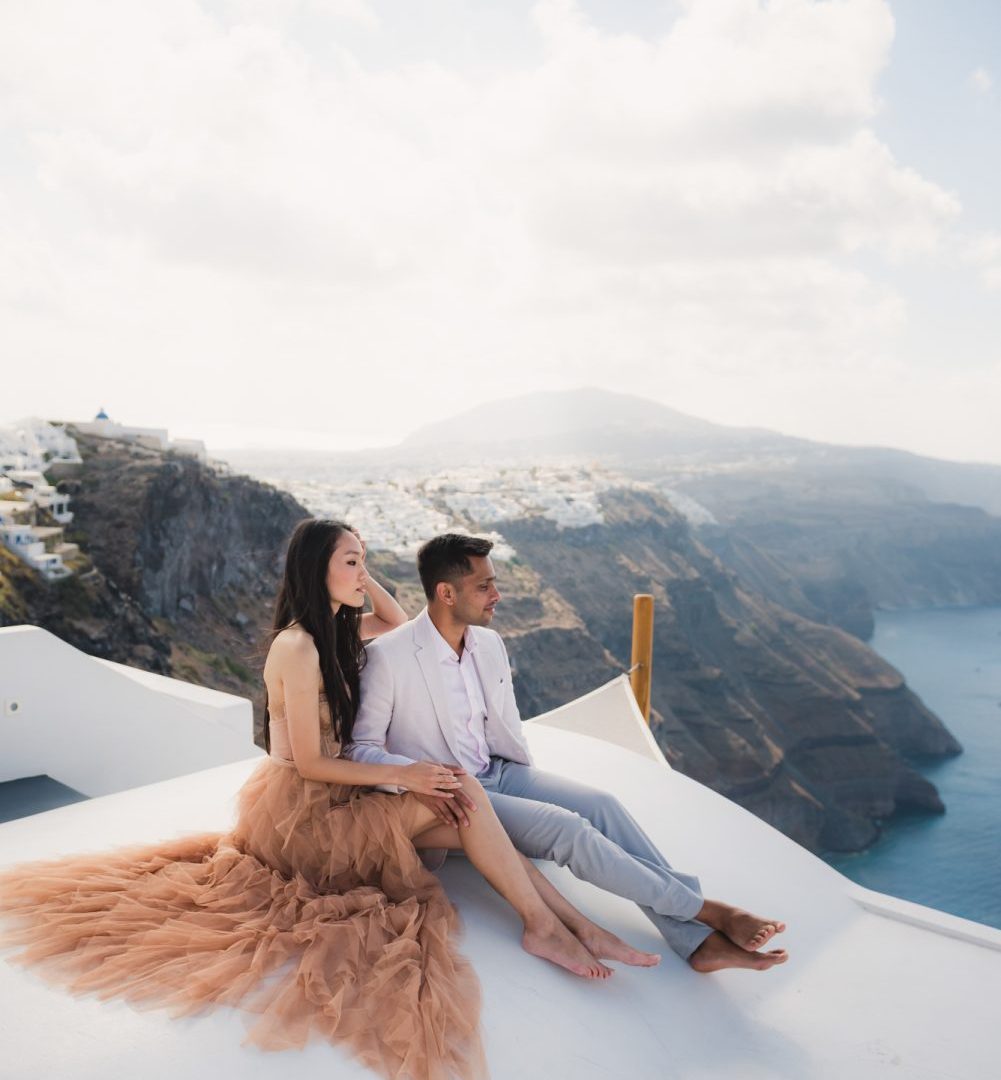 Tiffany and Udai. They looked at each other, and they smiled – effortless being together. Spending a morning with them starting in Oia city, then going to Imerovigli was a breeze, and I couldn’t think of a better way to capture Santorini’s beauty and their Greece engagement pictures.